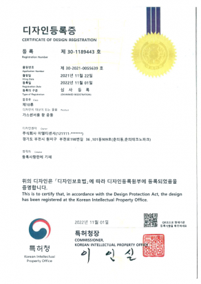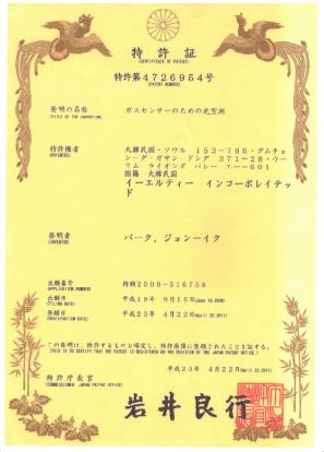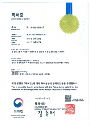 | Patent | Optical Gas Sensor | ELT SENSOR Corp. | 10-0494103 |