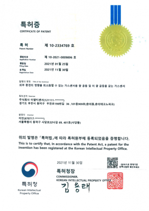 Patent | NDIR Gas Sensor with Two Independent Optical Path | 10-1088360 | |