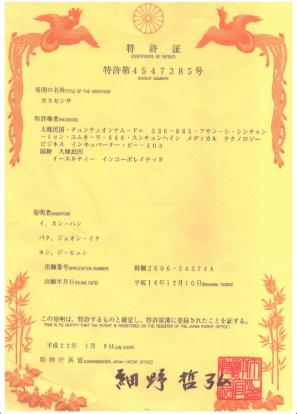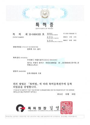 특허 | 광학적가스센서 | (주)이엘티센서 | 10-0494103 |