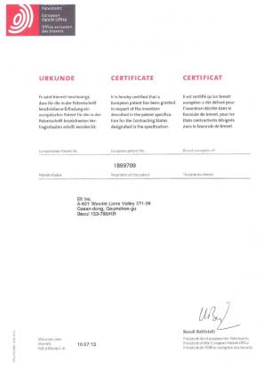 ※ 그 외 국제특허 10건 및 의장등록 10건 보유(미국, EU, 중국, 일본 등)